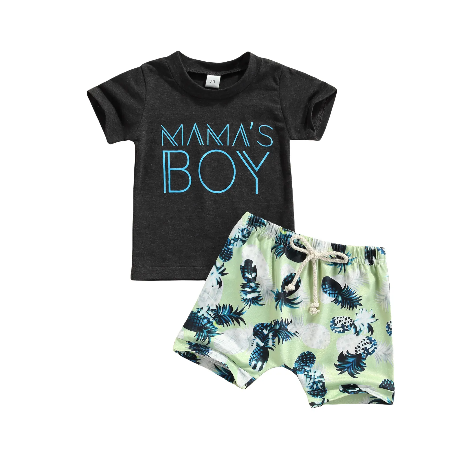 Conjunto de camiseta y pantalones cortos elásticos con estampado de letras de manga corta y cuello redondo casual para bebés
