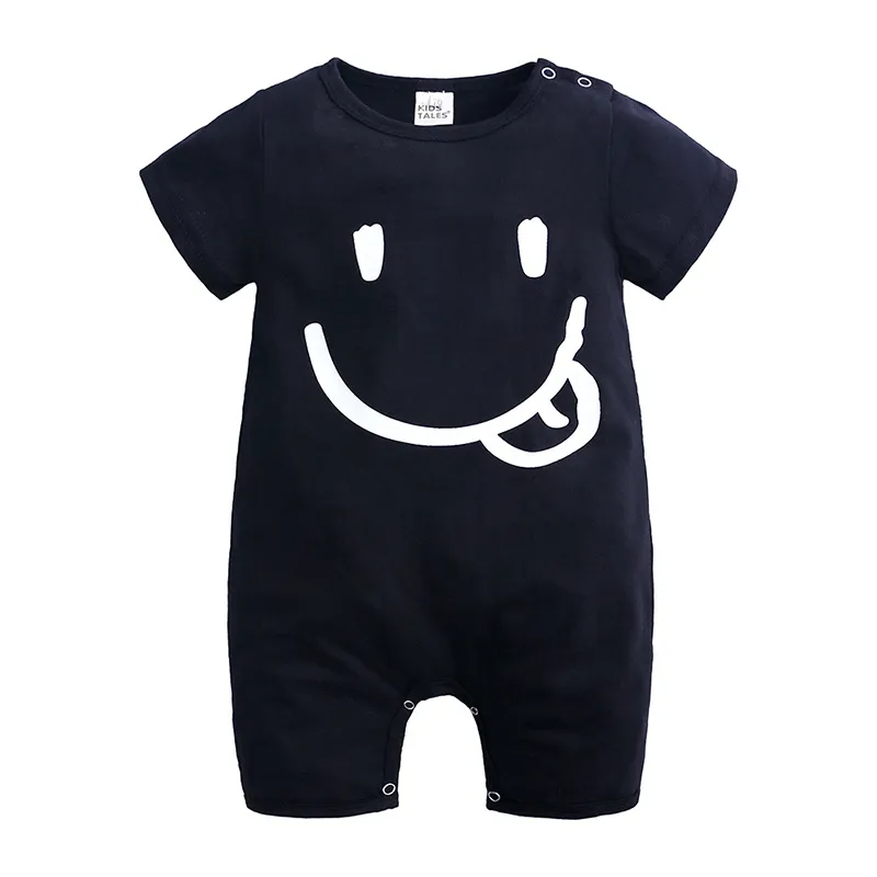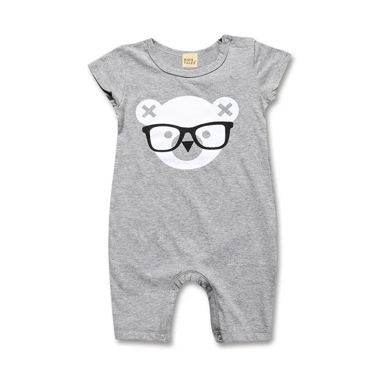 Mameluco de letras con patrón de dibujos animados de manga corta con cuello redondo para bebés