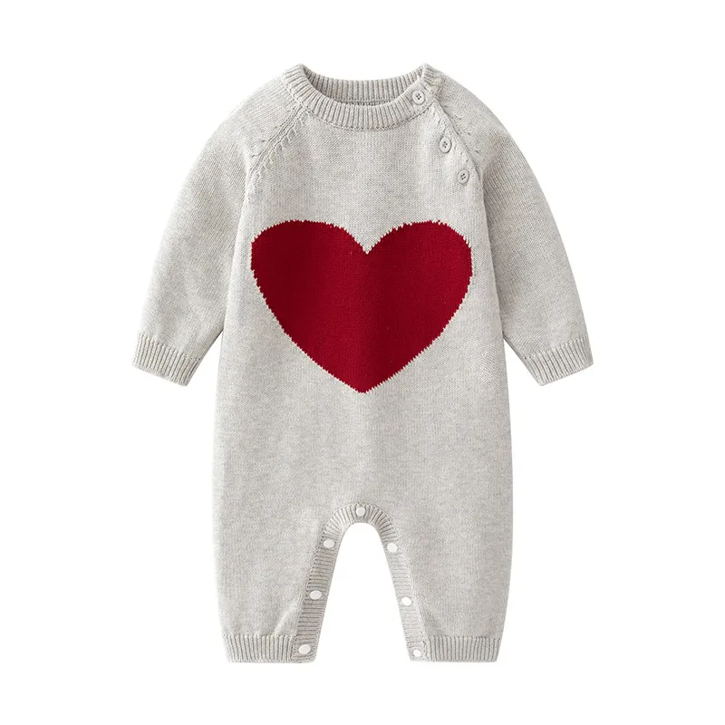 Quimono de punto de manga larga con diseño de corazón en jacquard para bebé de invierno.